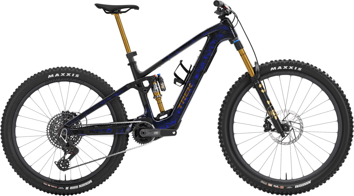 Fuel+ MX 9.9 X0 AXS is our top-tier chaos-loving e-MTB for chasing the wild beyond the beaten path. It starts off with an OCLV Mountain Carbon frame with TQ's HPR60 motor, speced with a Fox Factory suspension package (150mm rear, 160mm front), and MX wheels for getting rowdy on the trail. You get all the best components, including SRAM's wireless X0 AXS transmission, SRAM Maven Silver 4-piston brakes, a Fox Transfer NEO dropper post, and carbon Bontrager Line Pro 30 wheels.